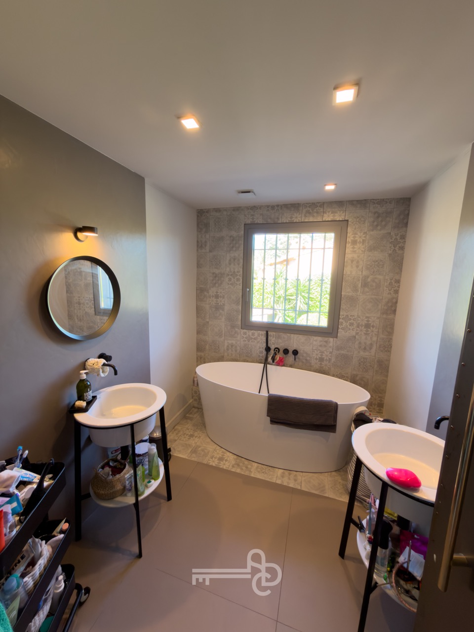 Implantée sur une parcelle paysagée de 3 450 m², la propriété profite d’un ensoleillement optimal et d’un panorama collinaire rare.