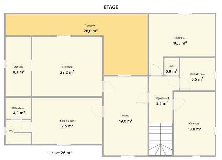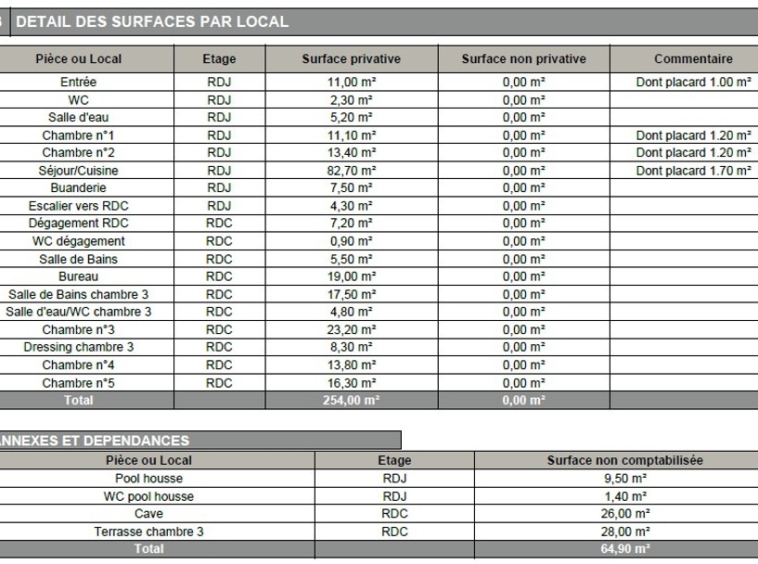 D’une surface totale de 254 m² habitables répartis sur deux niveaux, la maison séduit par ses volumes, sa luminosité et la qualité de sa rénovation.